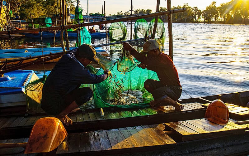08:00 AM Arrive at Ninh Kieu Wharf in Can Tho City and board a motorized boat to Cai Rang Floating Market. On the journey, witness bustling activities along the Can Tho riverbanks and learn how locals fish and transport goods via waterway.