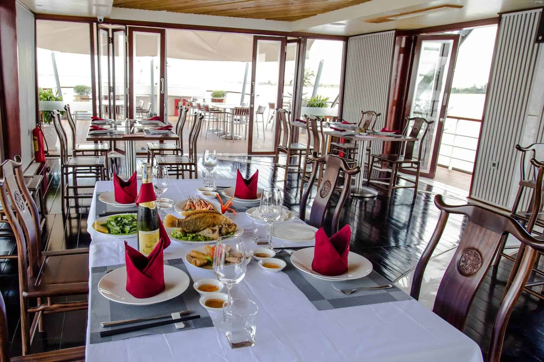 17 April 2025 ★★★★★We went on a 7 day Mekong River cruise on the La Marguerite ship. Our twin room on the lower level was very nice, and the bed was extremely comfortable. Housekeeping twice a day with turndown service was fantastic. Dining was spectacular with buffet and menu choices, and the special dinner was magnificent. Each day the menus reflected local Mekong flavors. Service was extraordinarily good. Every evening a complimentary happy hour was offered, and the staff were always attentive. My traveling companion was gluten free and had many wonderful options at each meal. Excursions were very good, with gentle or more active tour choices and excellent local guides. This was one of the best cruise experiences I’ve ever had!